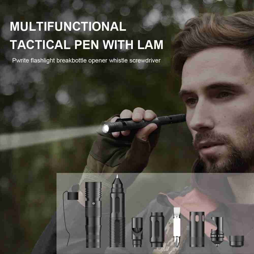 Multifunctional Tactical Pen Self Defense Women Defending Flashlight Aluminum Screwdriver Corkscrew Protect Survival Accessories